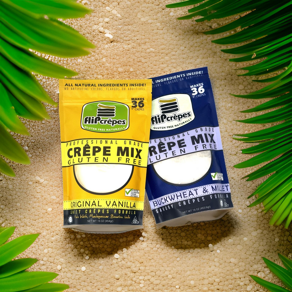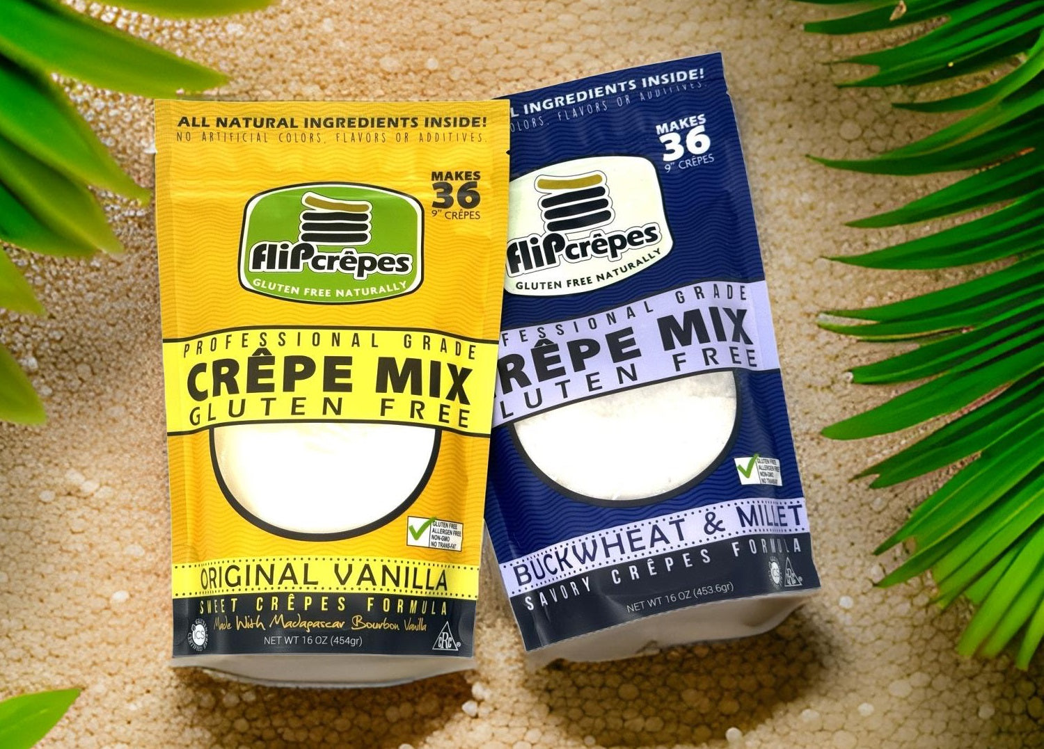 We developed our gluten-free crêpe mix for our restaurant. You can now make these awesome crêpes in the convenience of your home.