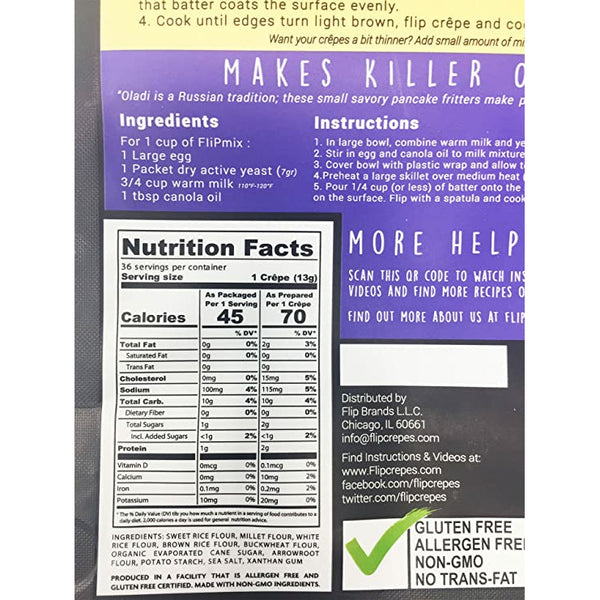 Discover the perfect blend of ancient grains with our Savory Buckwheat & Millet Gluten-Free Crêpe and Pancake Mix. Designed for versatility, this mix allows you to create delicious crêpes, pancakes, waffles, and more. Made in an allergen-free facility, it’s ideal for those avoiding gluten, dairy, and nuts. With easy-to-follow recipes, you'll consistently achieve great results. This 16oz pack is GMO-free and free from trans fats, artificial flavors, and preservatives, ensuring a wholesome, natural treat for your family.